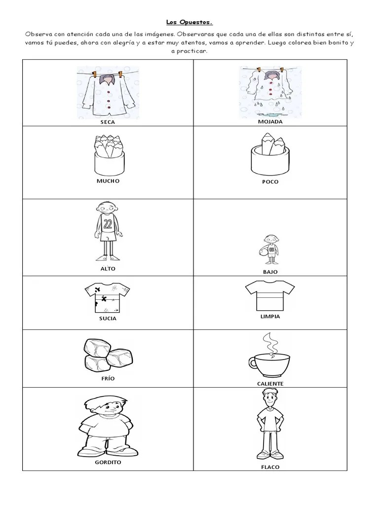 Opuestos Para Niños Para Colorear : Fichas De Conceptos Opuestos Para Ninos Muchos Y Pocos